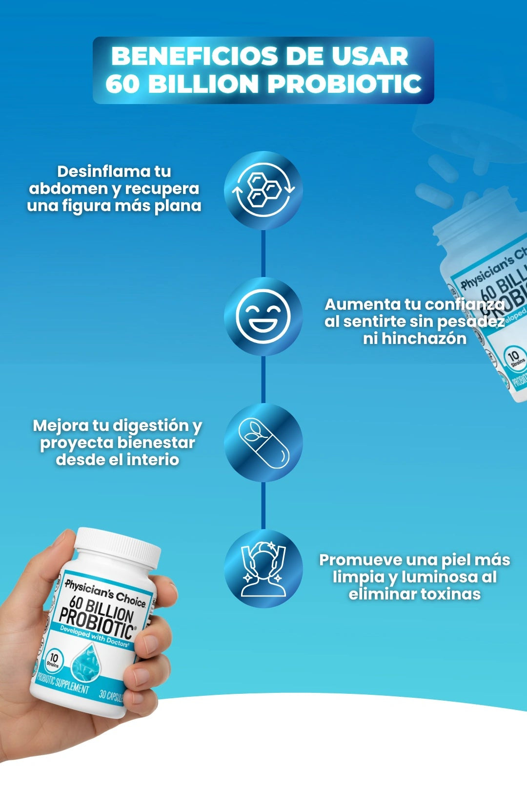 No. 60 Billion Probiotics está elaborado con ingredientes naturales y veganos, sin hormonas ni químicos agresivos. Es seguro y suave con tu cuerpo, probado clínicamente y libre de efectos adversos conocidos.
